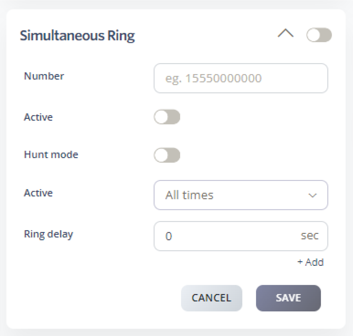 Active: Simultaneous ring will be active for that entered number.